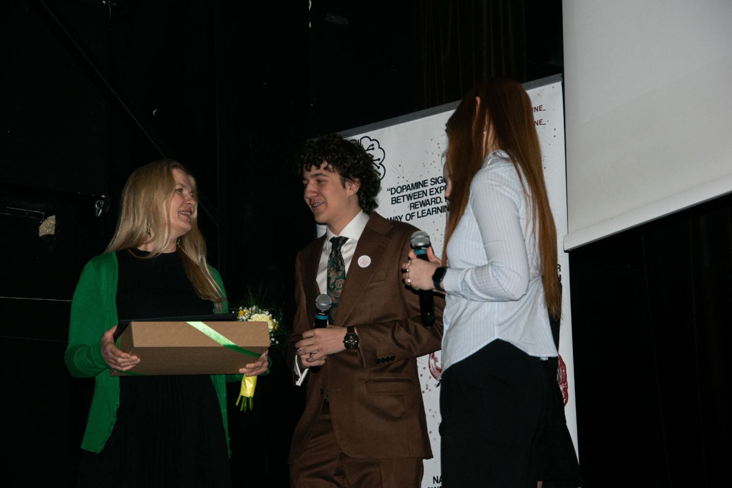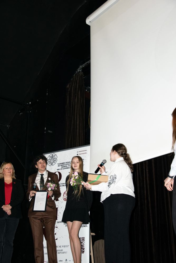 Uroczystość rozpoczęła się prezentacją założeń projektu oraz omówieniem jego przebiegu od pierwszych działań przygotowawczych po realizację warsztatów i inicjatyw edukacyjnych. Szczególnym punktem programu było wyświetlenie filmu przygotowanego przez uczestników projektu. Materiał miał charakter podsumowujący i edukacyjny, a także w sposób przystępny przedstawił najważniejsze etapy i cele działań „ON dopamine”.